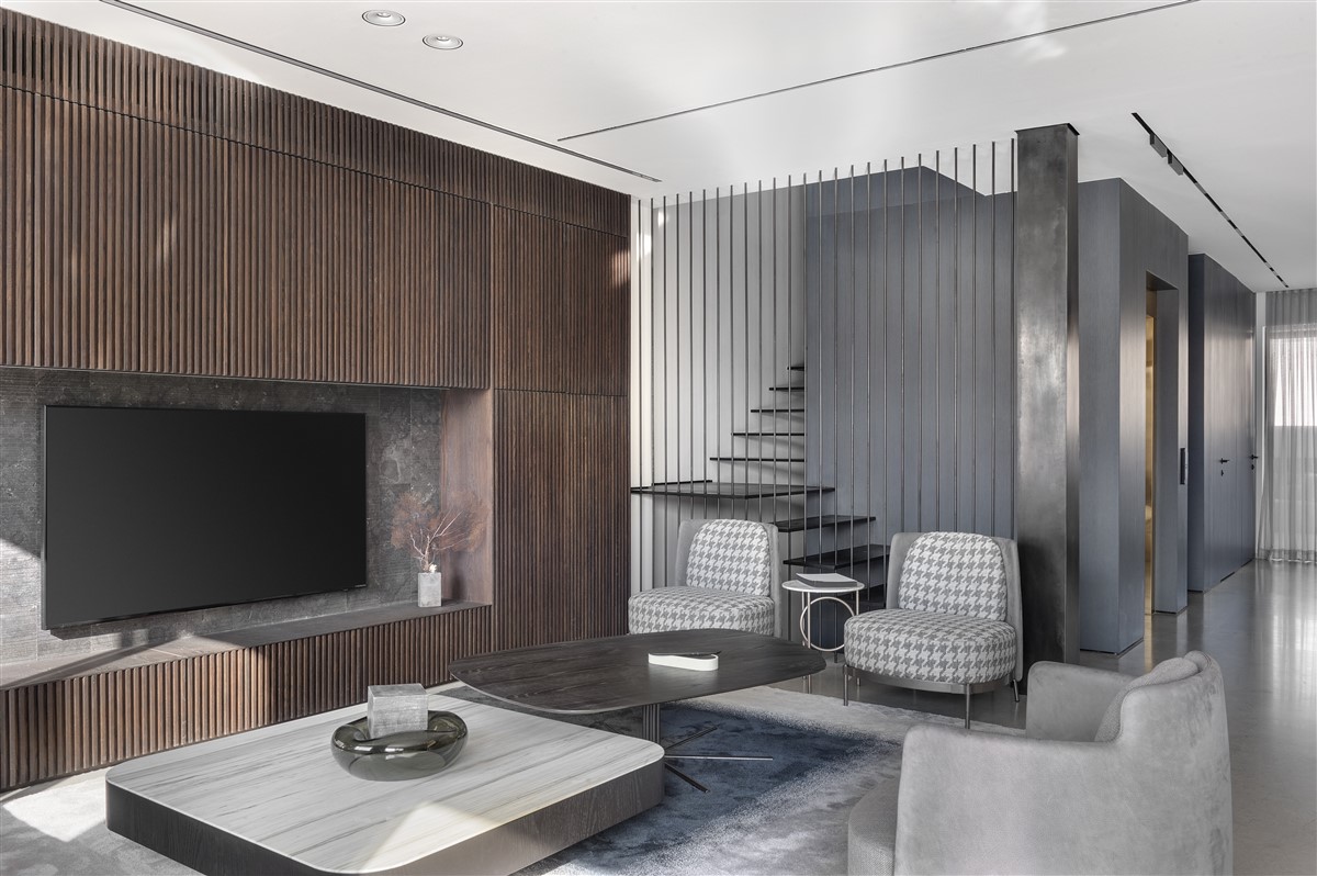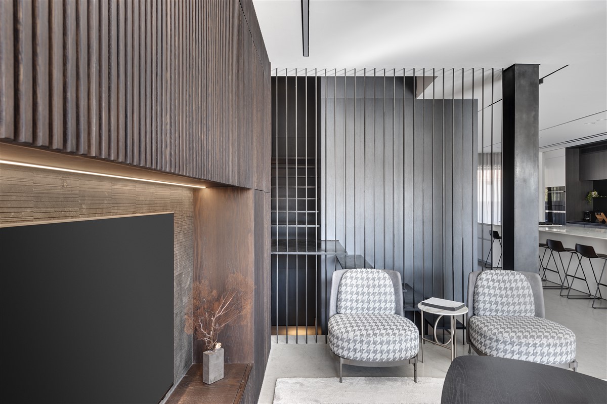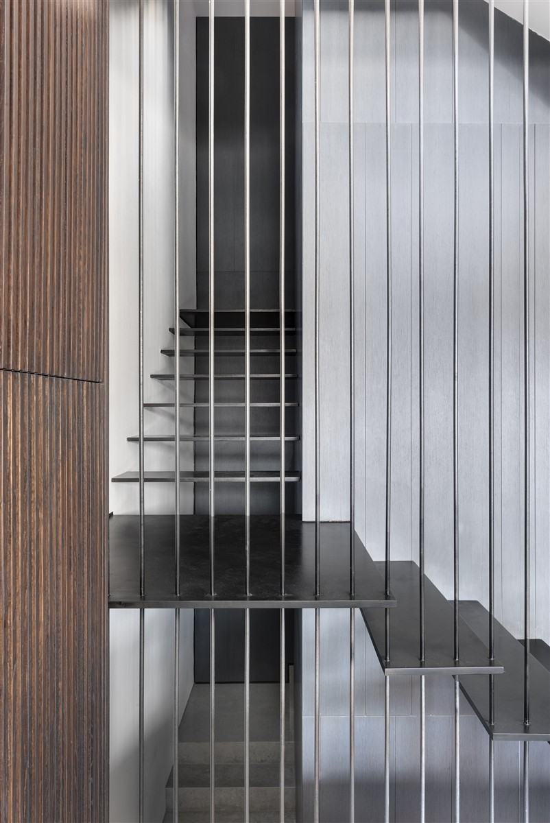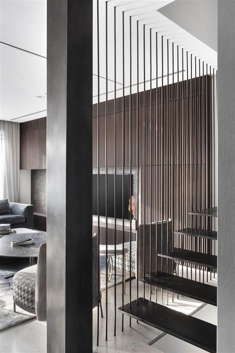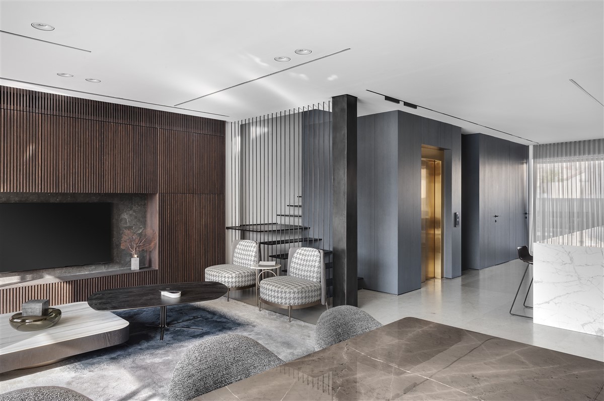 פרויקט נגרות מיוחד, עבודת נגרות בהתאמה אישית הכוללת חיפוי קיר מורכב מסביב לציר מעלית המתפרס לאורך 3 קומות.
