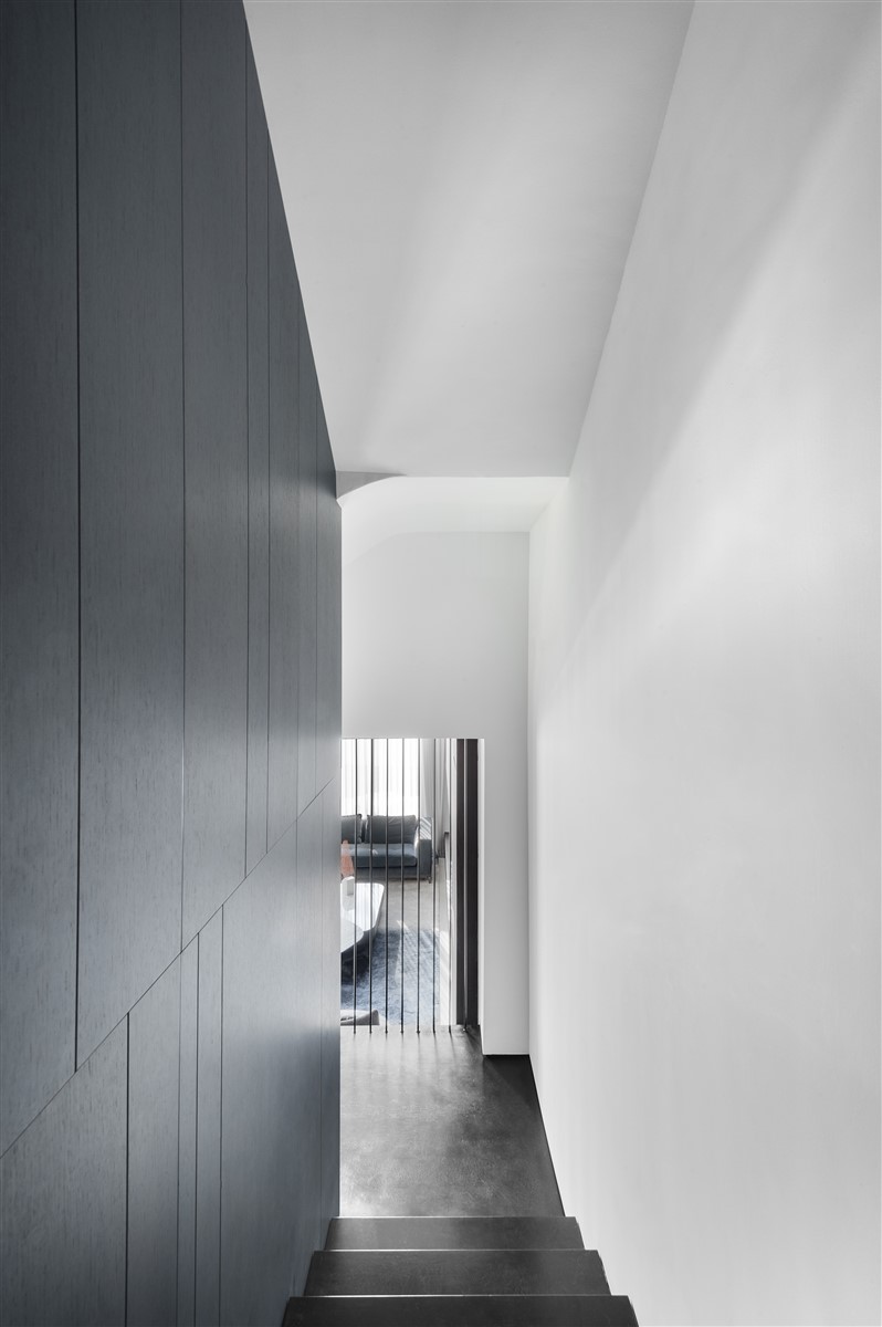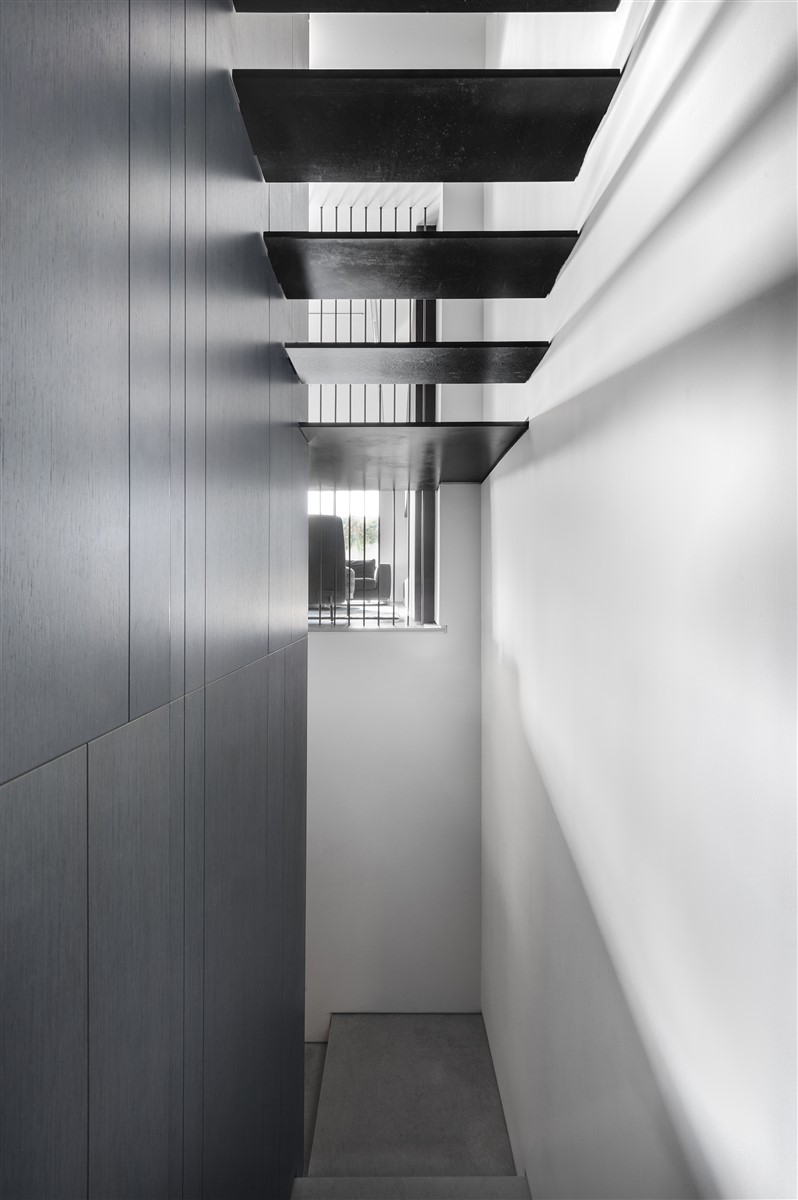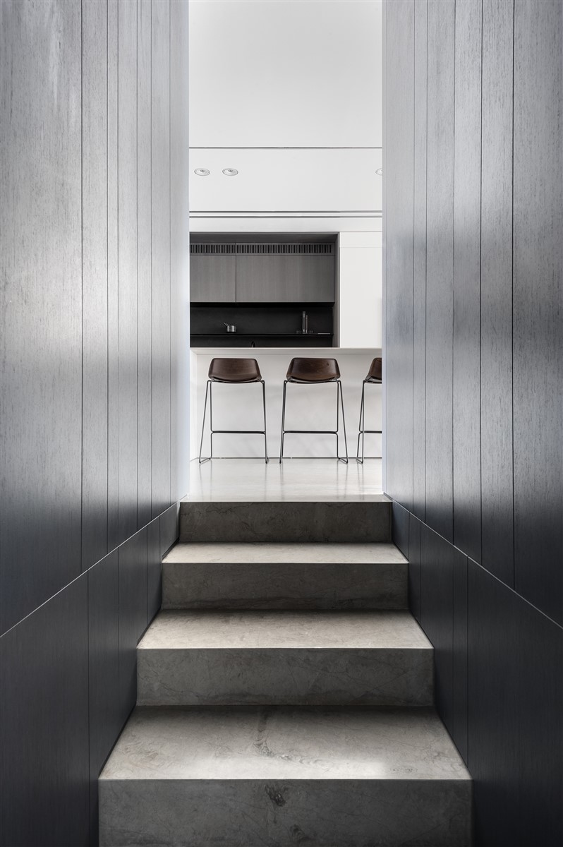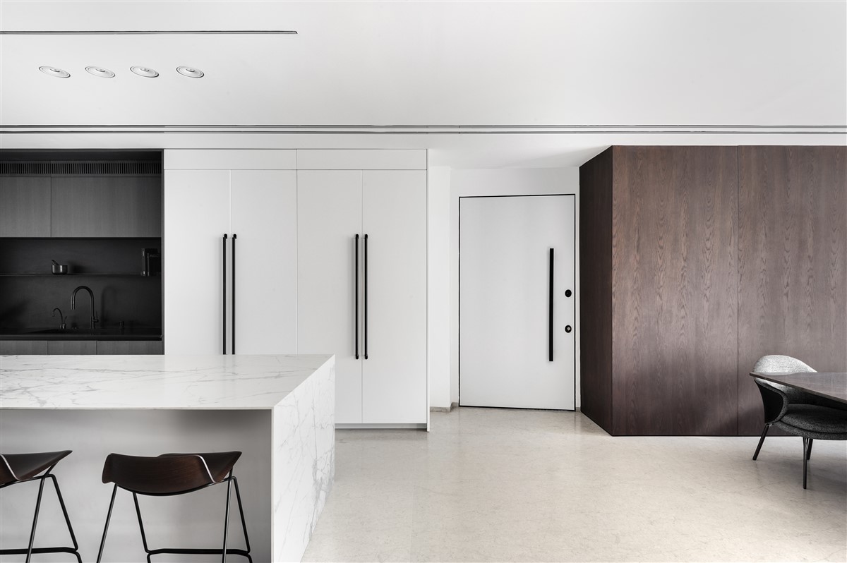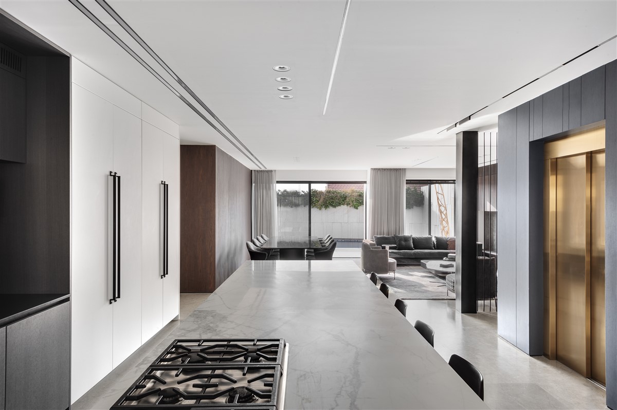פרויקט נגרות מיוחד, עבודת נגרות בהתאמה אישית הכוללת חיפוי קיר מורכב מסביב לציר מעלית המתפרס לאורך 3 קומות.
