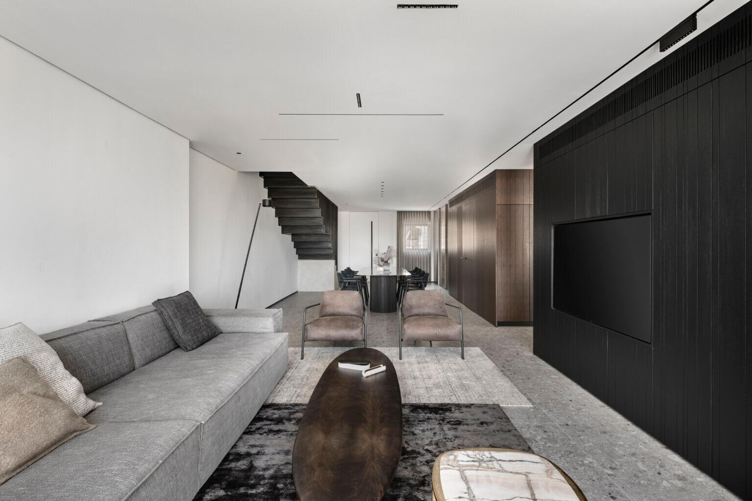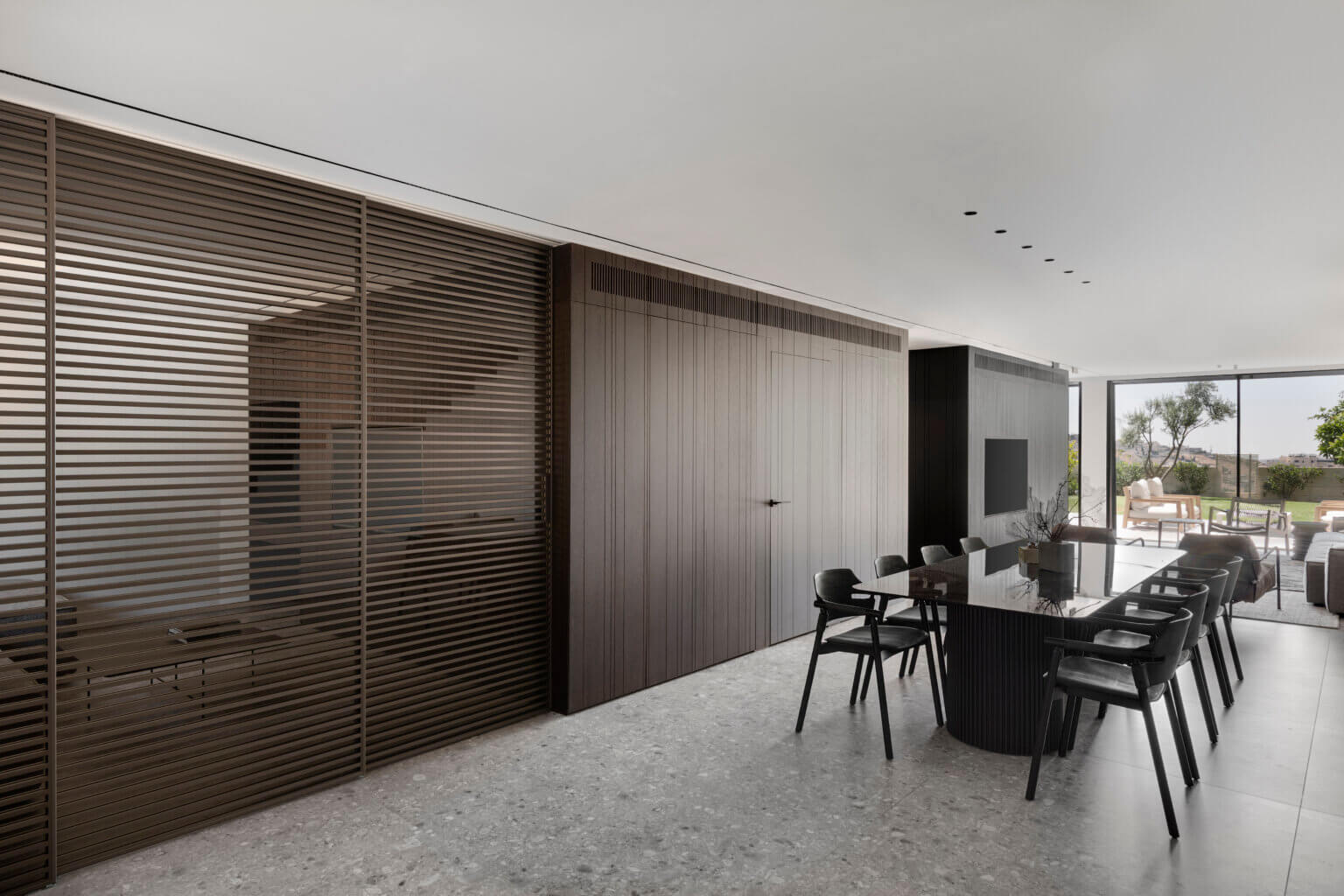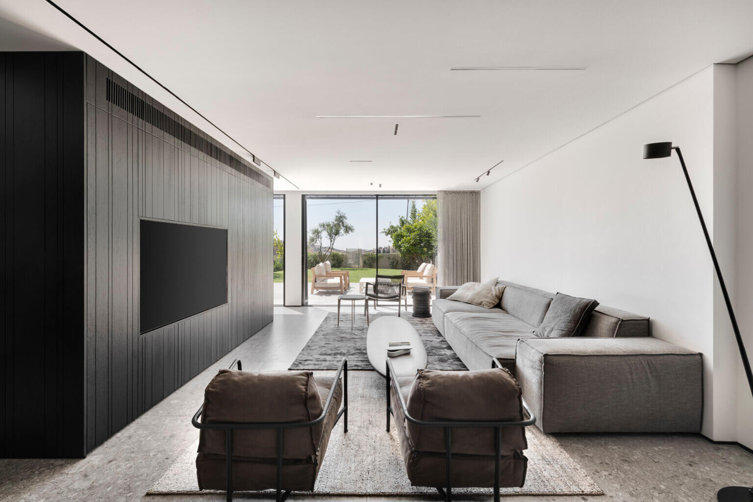 קיר TV חזיתות צבע אפוקסי, או פורניר לבחירה, חירוץ תלת ממד כולל סגירה דקורטיבית בקיר הטלווזיה