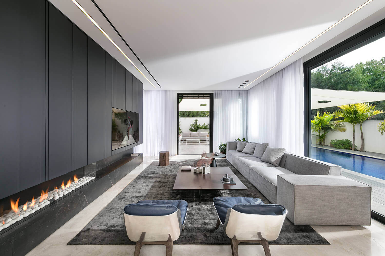 קיר TV חזיתות צבע אפוקסי, או פורניר לבחירה, חירוץ תלת ממד כולל סגירה דקורטיבית בקיר הטלווזיה