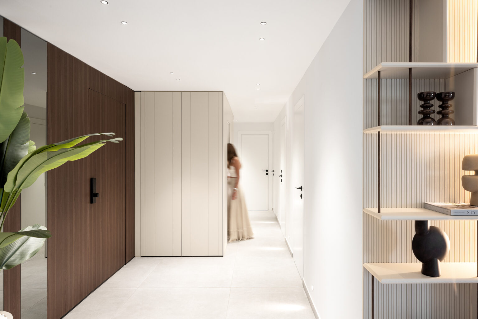 קיר TV חזיתות צבע אפוקסי, או פורניר לבחירה, חירוץ תלת ממד כולל סגירה דקורטיבית בקיר הטלווזיה
